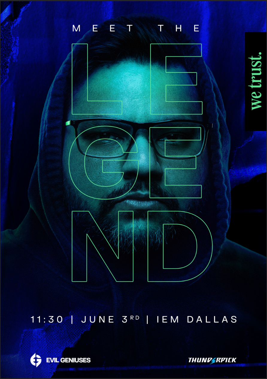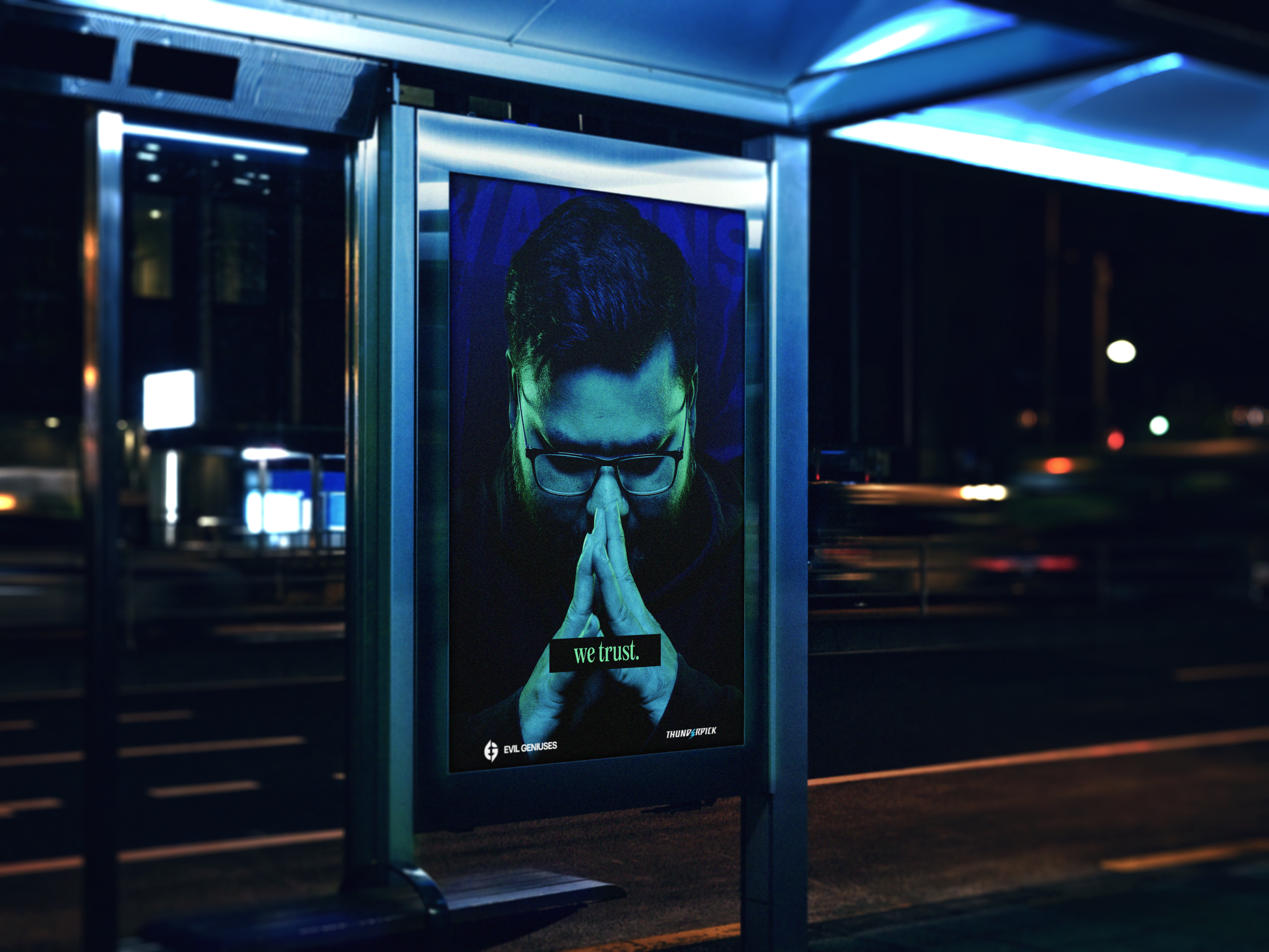 As the leader in art direction, I spearheaded the initiation of a campaign designed to rejuvenate the Evil Geniuses CS:GO team and enhance the profile of our Director of Athletics. This carefully crafted campaign embraced an aesthetic that resonated with our target audience.